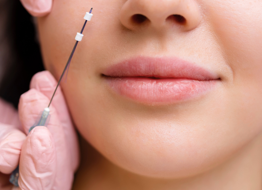 Lifting não cirúrgico com fios que sustentam e estimulam colágeno.